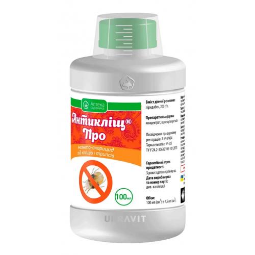 Антикліщ ПРО к.е. – акарицид контактно-кишкової дії, створений для швидкого та впевненого захисту плодових, декоративних культур, винограду та цибулі від кліщів. Працює по основних стадіях розвитку шкідника – від яйця до дорослої особини, тому популяція різко зменшується вже в перші дні після обробки. Препарат не пригнічує рослини й підходить як для присадибних ділянок, так і для професійних насаджень.