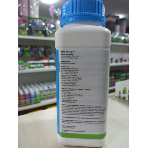Препаративна форма - концентрат суспензії (КС). Випускається в каністрах по 5 л або пляшках по 1 л (ціна фунгіциду КУСТОДІЯ у регіональних представництвах вказана за тарну одиницю такого об’єму).