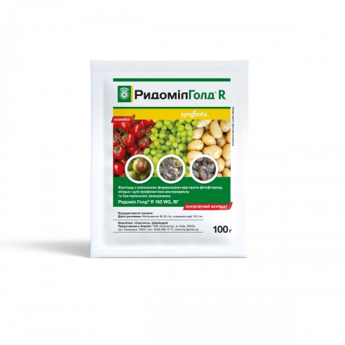 Ридоміл Голд Р — високоефективний фунгіцид нового покоління з комбінованою дією (системною та контактною), створений спеціально для боротьби з такими небезпечними захворюваннями, як фітофтороз, пероноспороз, бактеріози та альтернаріоз. Завдяки новій формулі з високодисперсною колоїдною міддю (частинки <1 мкм), забезпечує рівномірне покриття рослин та відмінну стійкість до змивання дощем.